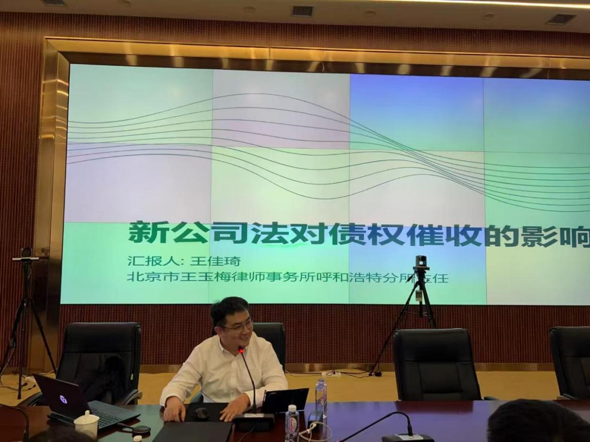 培訓期間,北京市王玉梅律師事務所呼和浩特分所王佳琦主任結合新修訂的《公司法》在公司治理結構、股東責任等方面的調整變化,借鑒其他先進地區(qū)金融債務糾紛典型案例,詳細介紹了債權方在面對不同催收追償狀況下應采取利用的司法手段措施,充分合理運用最新法律賦予的權利,從而最大限度維護公司自身權益。
