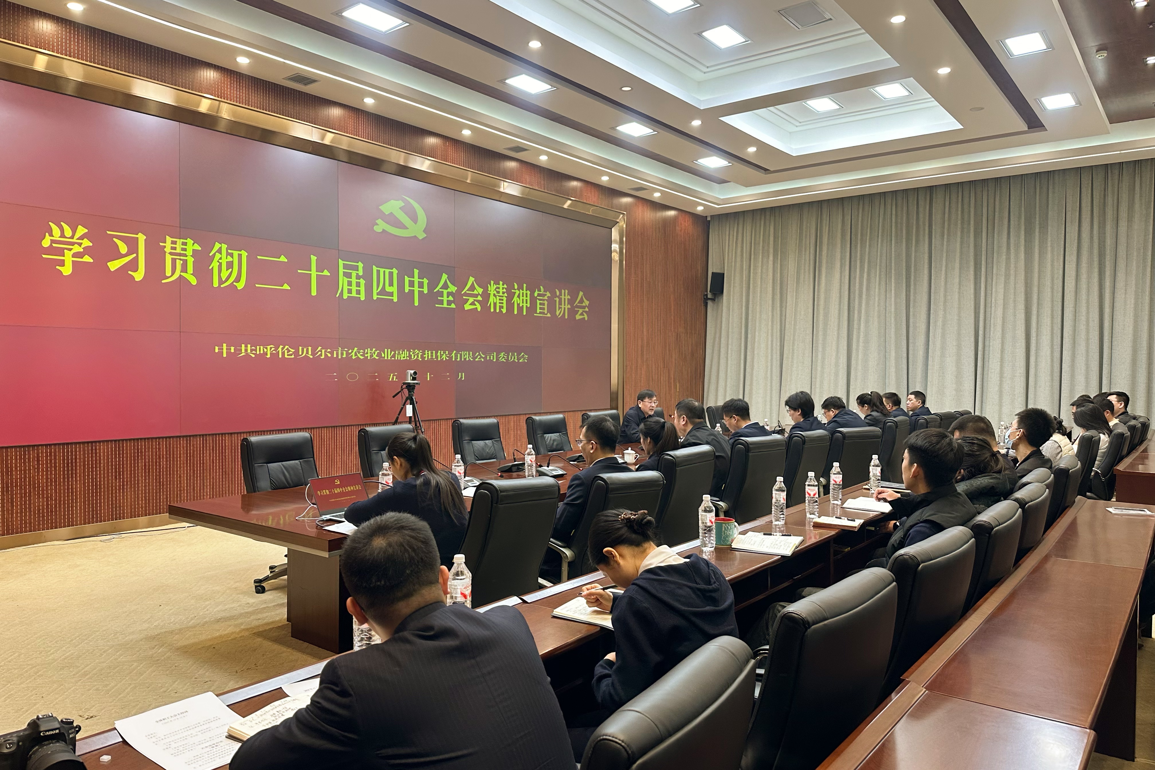 2025年12月12日,呼倫貝爾市農(nóng)牧業(yè)融資擔保有限公司黨委召開學習貫徹黨的二十屆四中全會精神宣講報告會,專題學習全會精神并研究部署貫徹落實舉措。公司黨委書記、董事長王增志作宣講報告,全體干部職工參加會議。